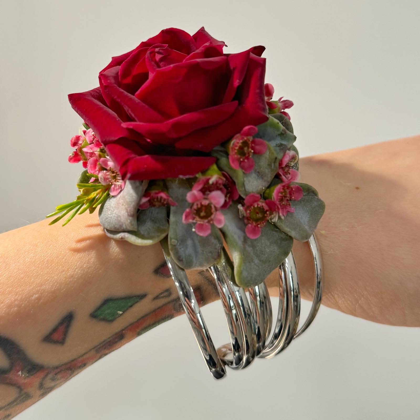Choose from our exquisite selection of thin bracelets for $55 or thick bracelets for $65, available in silver or gold. The colors and flowers are entirely up to you, but we encourage you to trust our artistic vision. Our designers are experts at crafting breathtaking pieces that will make your prom night extra special.