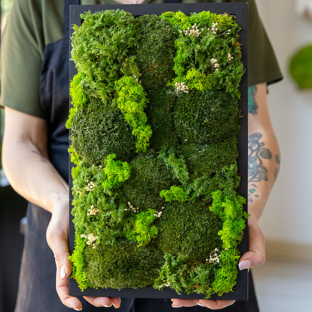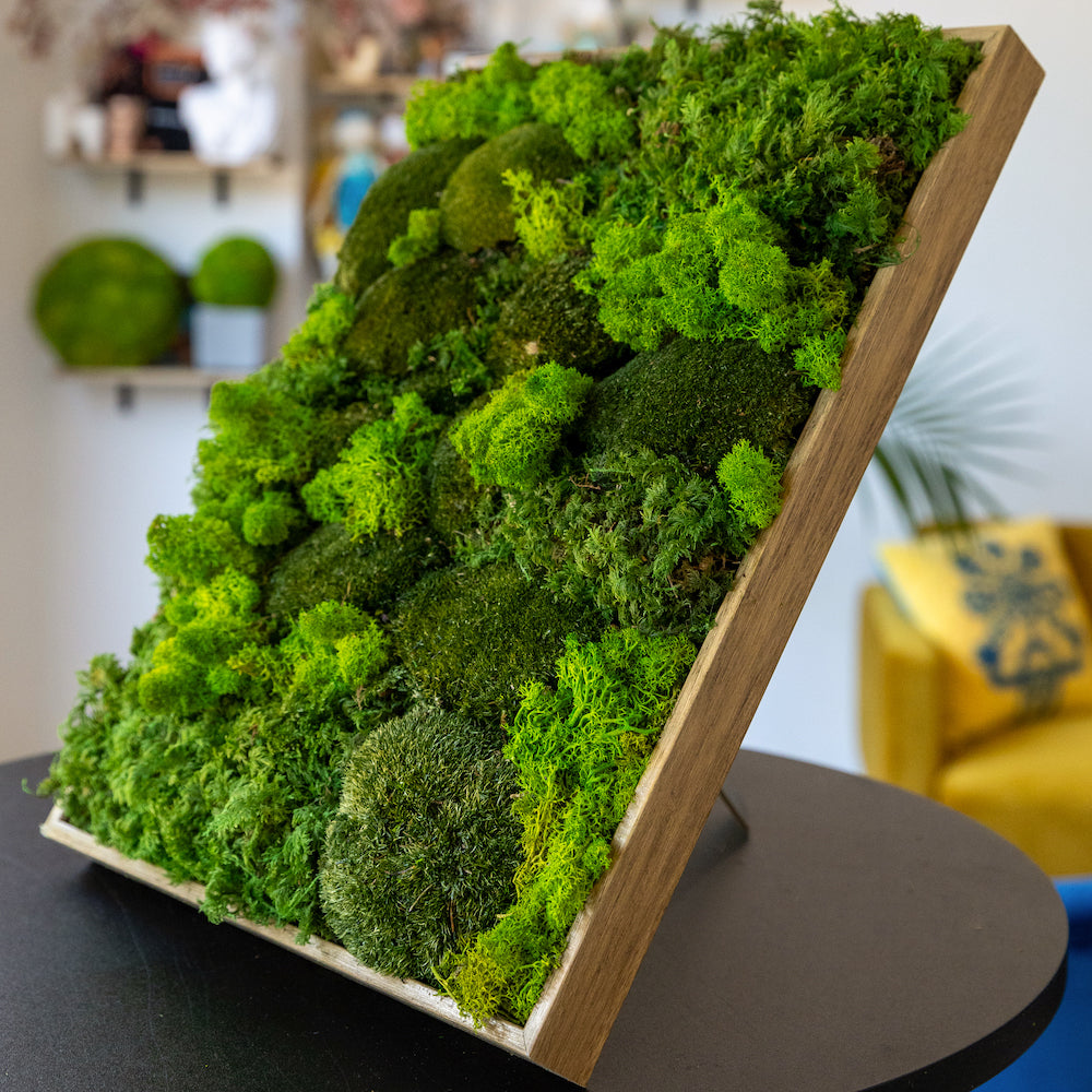 For those seeking sustainable design solutions, our moss walls present an eco-friendly alternative that aligns with contemporary values. Comprised of 100% natural and compostable materials, they offer a guilt-free means of enhancing interior spaces without compromising on environmental responsibility. From expansive wall coverings to smaller, more intricate frames, moss walls cater to a spectrum of design preferences, ensuring versatility and adaptability in their application.
