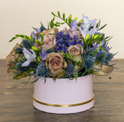 - Small Hat Box: Approximately 25 stems of vibrant blooms. Please note that the arrangement may differ from the image as we use the freshest flowers available.